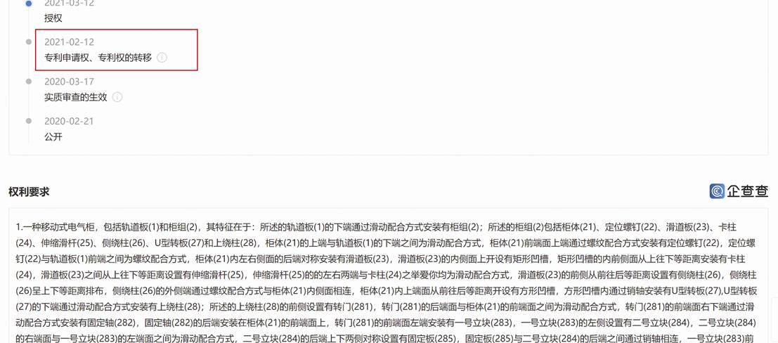 一種戶外防雨控溫室電氣柜專利轉移情況企查查截圖
