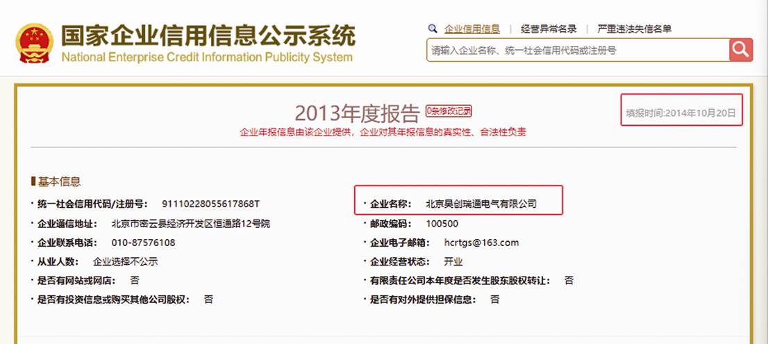 通過國家企業信用信息公示系統查詢到的信息顯示,納眾杰披露的2013年—2017年年報顯示企業名稱為“北京昊創瑞通電氣有限公司”,其中,2013年年報的披露時間為2014年10月,2017年年報披露時間為2018年4月。2018年—2022年年報中披露的企業名稱則為“北京納眾杰電氣有限公司”,其中2022年年報披露時間為2023年5月。2023年年報披露的企業名稱為“北京納眾杰科技有限公司”,該2023年年報披露時間為2024年3月。