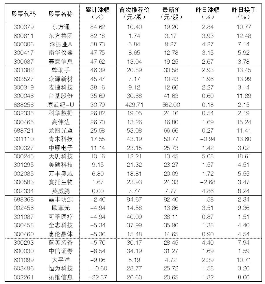 30成份股2日漲幅前五位的是天璣科技、藍英裝備、深振業A、東方集團、歐菲光,漲幅分別為5.08%、4.40%、4.27%、3.93%、3.51%;跌幅方面,賽托生物、青木科技、工商銀行跌幅居前。