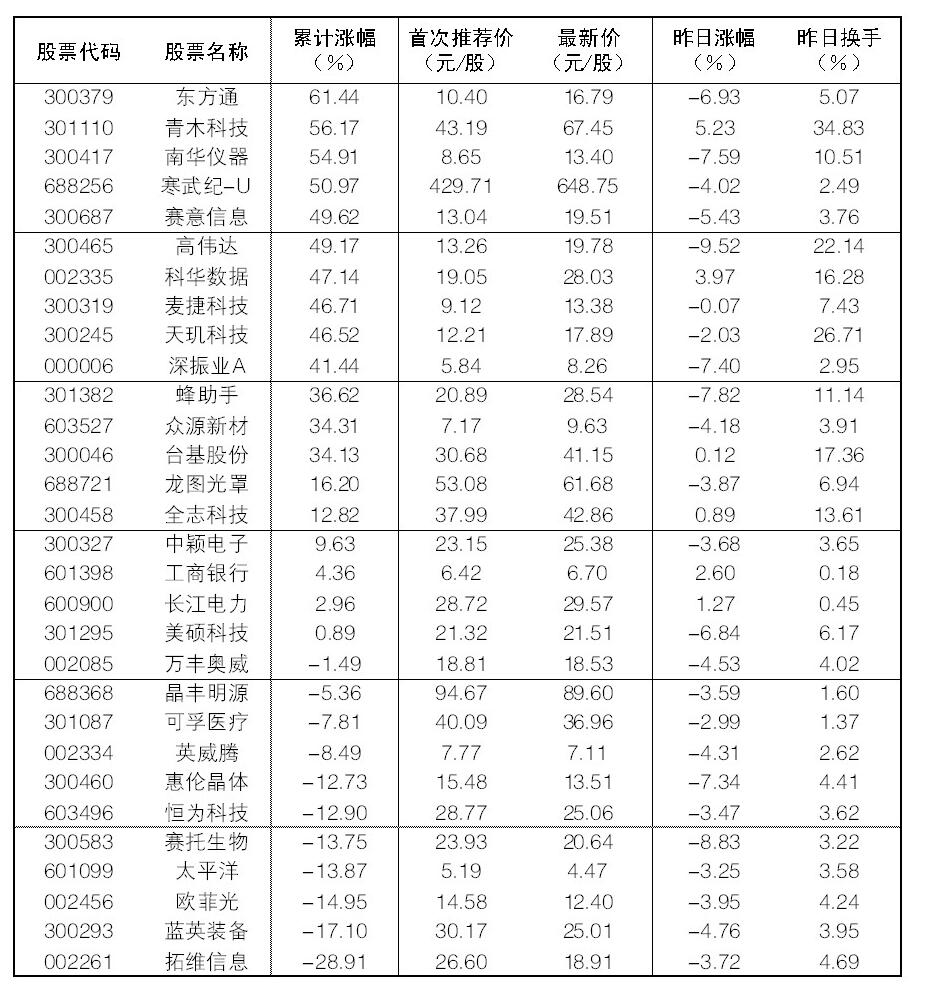 30成份股23日漲幅前五位的是青木科技、科華數據、工商銀行、長江電力、全志科技,漲幅分別為5.23%、3.97%、2.60%、1.27%、0.89%;跌幅方面,高偉達、賽托生物、蜂助手、南華儀器跌幅居前。