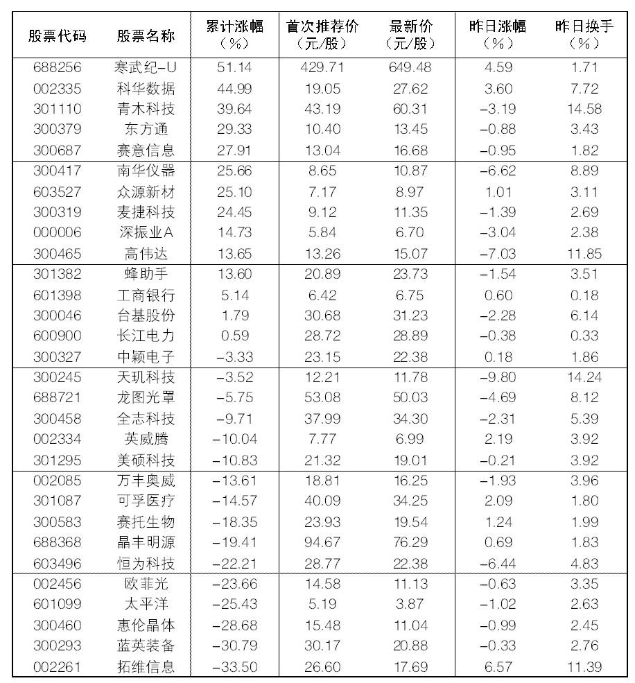 30成份股6日漲幅前五位的是拓維信息、寒武紀-U、科華數據、英威騰、可孚醫療,漲幅分別為6.57%、4.59%、3.60%、2.19%、2.09%;跌幅方面,天璣科技、高偉達、南華儀器、恒為科技跌幅居前。