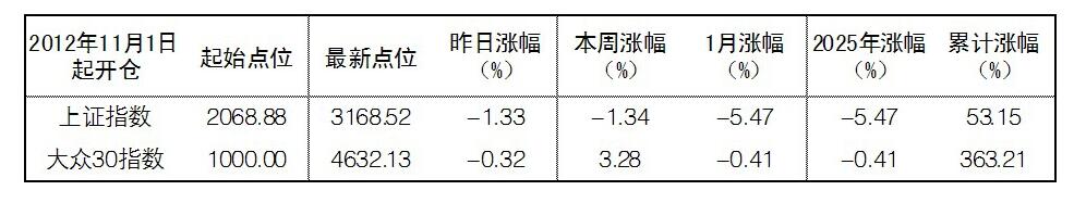 本報(bào)訊(記者 湯曉飛)本周,受到成交量萎縮影響,大盤(pán)呈現(xiàn)震蕩整理的走勢(shì)。上證綜指下跌1.34%,深證成指下跌1.02%,大眾30指數(shù)上漲3.28%。