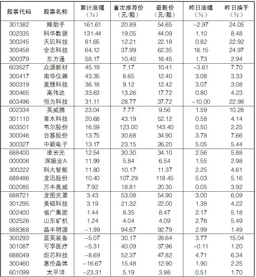 30成份股4日漲幅前五位的是全志科技、中穎電子、龍迅股份、炬芯科技、臺(tái)基股份,漲幅分別為16.15%、5.05%、5.03%、4.71%、3.78%;跌幅方面,恒為科技、眾源新材、蜂助手跌幅居前。