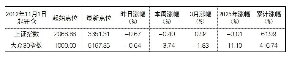 本報訊(記者 湯曉飛)本周,大盤呈現震蕩探底的走勢,上證綜指下跌0.40%,深證成指下跌0.75%,大眾30指數下跌3.74%。