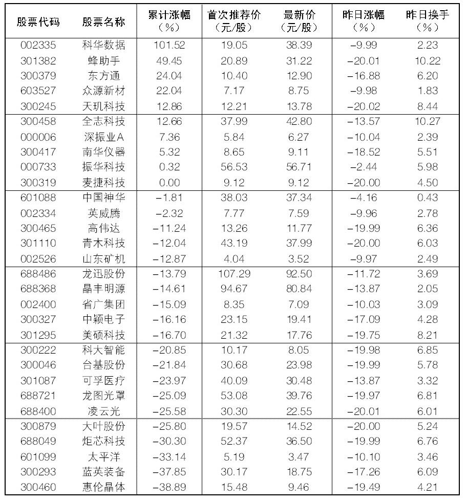 30成份股7日抗跌的分別是振華科技、中國(guó)神華;跌幅方面,天璣科技、蜂助手、凌云光、青木科技、麥捷科技跌幅居前。