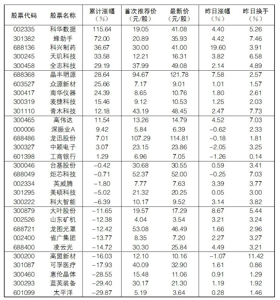 30成份股21日漲幅前五位的分別是科興制藥、大葉股份、晶豐明源、高偉達、凌云光,漲幅分別為19.60%、8.67%、7.58%、4.52%、4.49%;跌幅方面,中穎電子、工商銀行、高盟新材跌幅居前。
