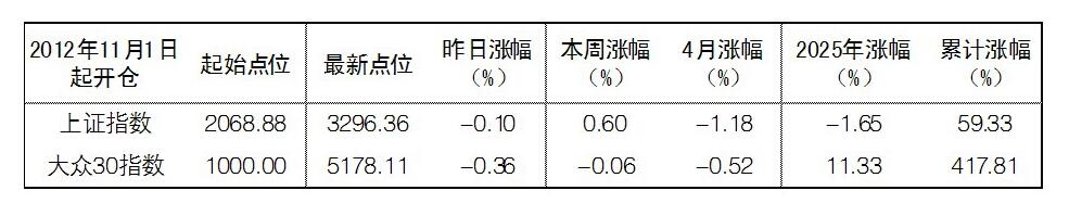2025年4月23日“大眾30”成份股報告