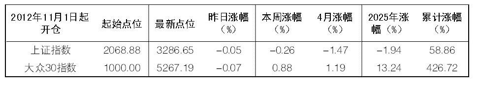 2025年4月29日“大眾30”成份股報告