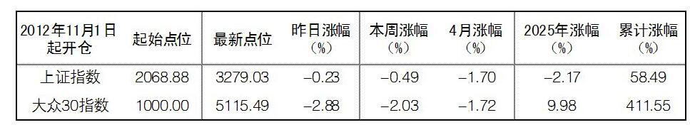 2025年4月30日“大眾30”成份股報告