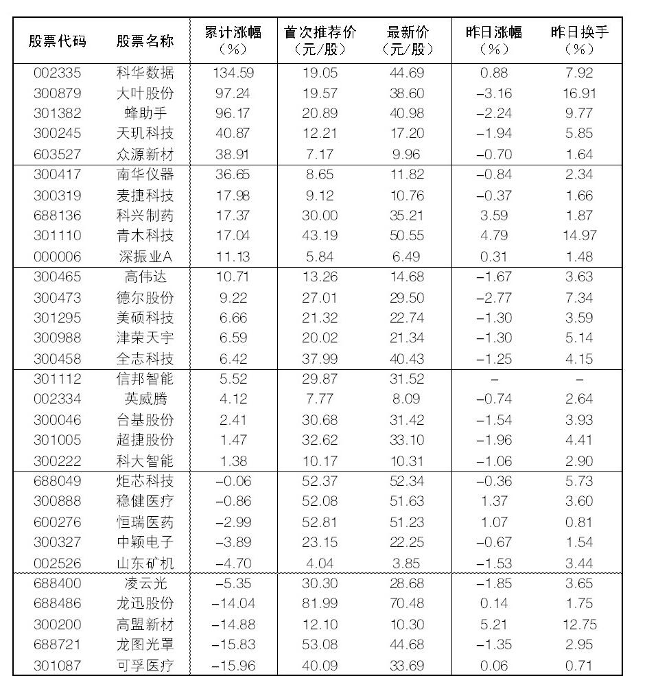 30成份股13日漲幅前五位的分別是高盟新材、青木科技、科興制藥、穩健醫療、恒瑞醫藥,漲幅分別為5.21%、4.79%、3.59%、1.37%、1.07%;跌幅方面,大葉股份、德爾股份、蜂助手、超捷股份等走勢較弱。
