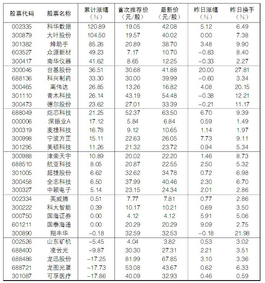 大眾30指數成份股中,25日漲幅前五位的分別是臺基股份、寧波方正、炬芯科技、科華數據、高偉達,漲幅分別為20.00%、7.73%、6.70%、5.12%、4.08%;跌幅方面,眾源新材、科興制藥、青木科技等跌幅居前。
