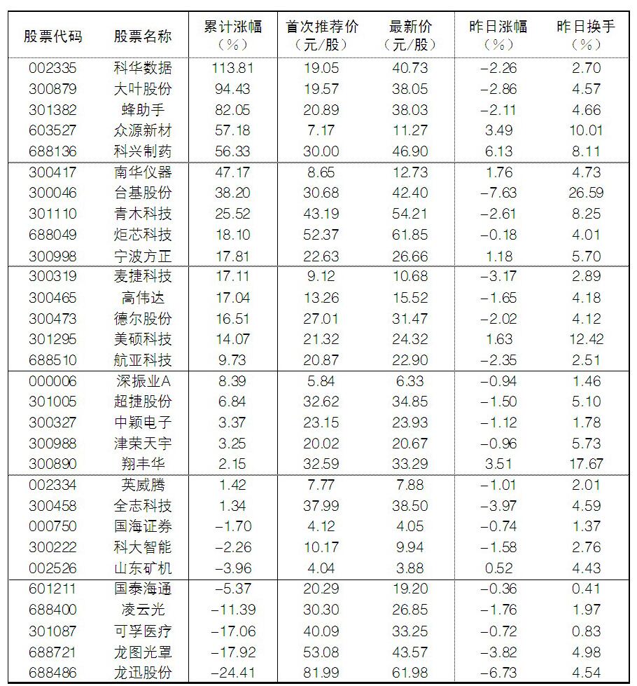 大眾30指數(shù)成份股中,2日漲幅前五位的是科興制藥、翔豐華、眾源新材、南華儀器、美碩科技,漲幅分別為6.13%、3.51%、3.49%、1.76%、1.63%;跌幅方面,臺(tái)基股份、龍迅股份、全志科技等跌幅居前。