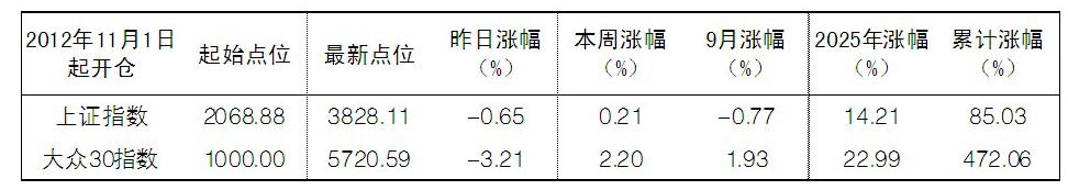 2025年9月26日“大眾30”成份股報告