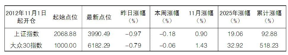 本報綜合消息 本周,大盤呈現沖高回落的走勢,上證綜指下跌0.18%,深證成指下跌1.40%,創業板指下跌3.01%,大眾30指數下跌0.06%。