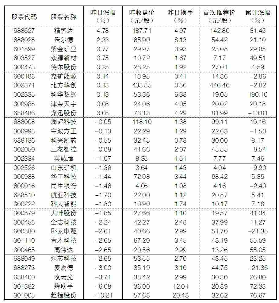 大眾30指數成份股中,3日漲幅前五位的分別是精智達、沃爾德、紫金礦業、眾源新材、德爾股份,漲幅分別為4.78%、2.33%、0.77%、0.75%和0.25%;跌幅榜上,超捷股份、蜂助手、凌云光、麥瀾德等跌幅居前。