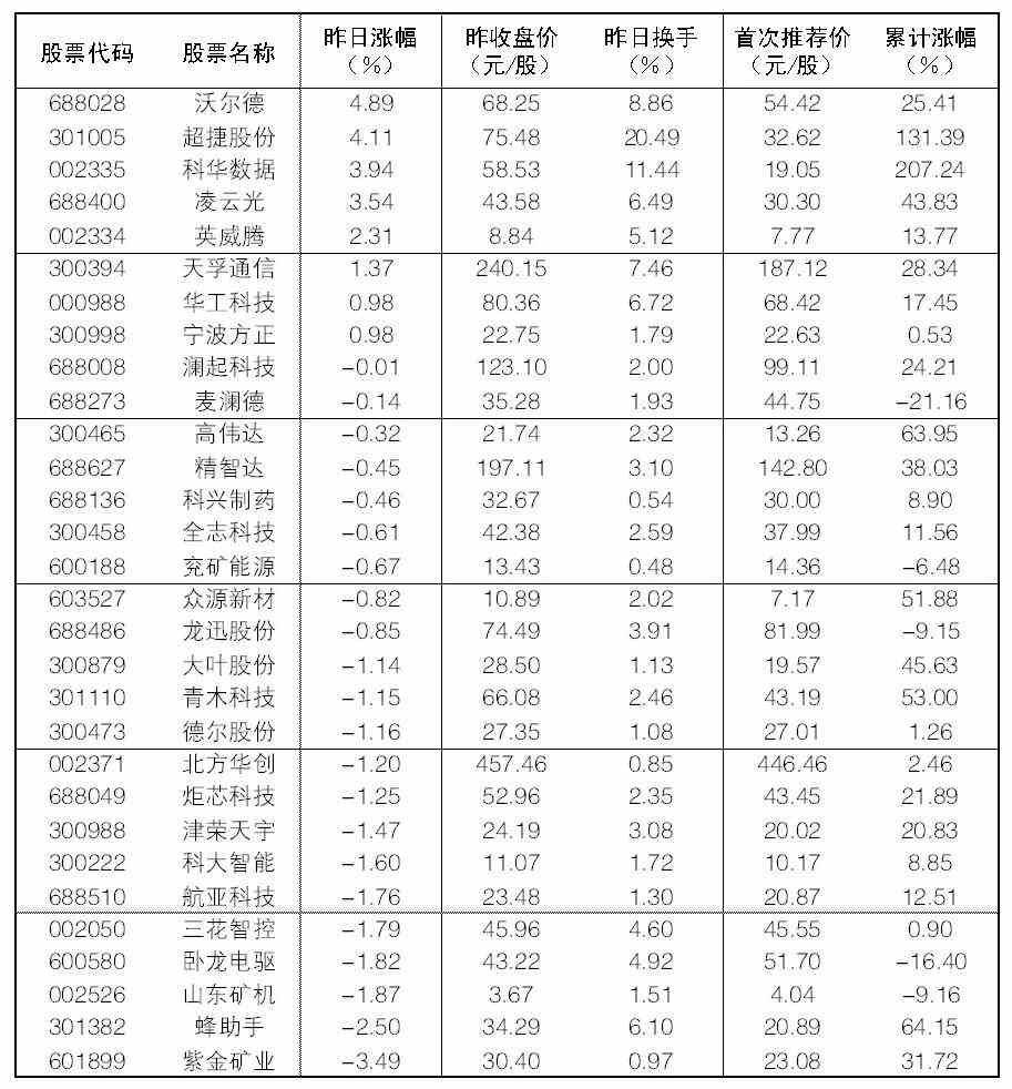 大眾30指數成份股中,9日漲幅前五位的分別是沃爾德、超捷股份、科華數據、凌云光、英威騰,漲幅分別為4.89%、4.11%、3.94%、3.54%、2.31%;跌幅榜上,紫金礦業、蜂助手、山東礦機、臥龍電驅等板塊走勢較弱。