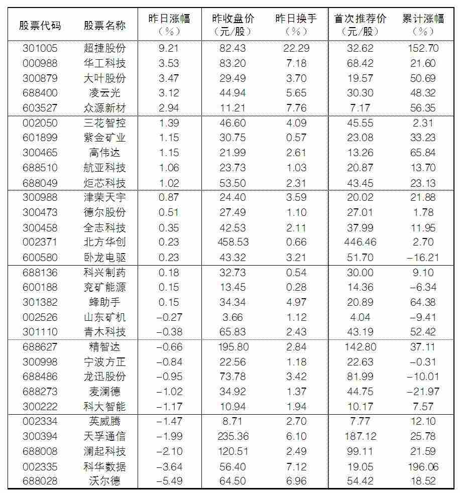 大眾30指數(shù)成份股中,10日漲幅前五位的分別是超捷股份、華工科技、大葉股份、凌云光、眾源新材,漲幅分別為9.21%、3.53%、3.47%、3.12%和2.94%;跌幅榜上,沃爾德、科華數(shù)據(jù)、瀾起科技、天孚通信等跌幅居前。