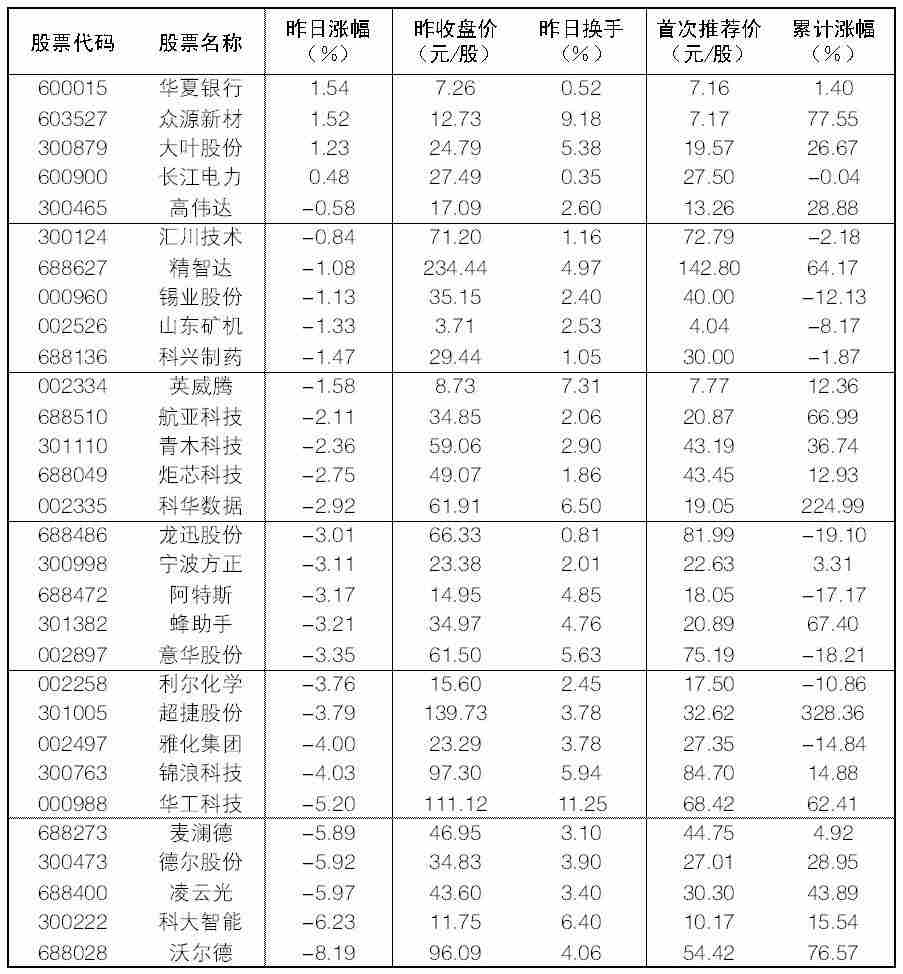 大眾30指數成份股中,17日逆市上漲的分別是華夏銀行、眾源新材、大葉股份、長江電力,漲幅分別為1.54%、1.52%、1.23%、0.48%;跌幅榜上,沃爾德、科大智能、凌云光、德爾股份等跌幅居前。